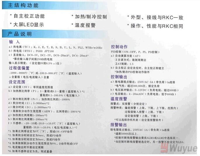 *自主校正功能*大屏LED顯示 *加熱/制冷控制*溫度報警*外型操作接線與RKC 一致*性能與RKC 相同